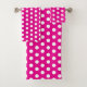 Bold White Polka Dots on Hot Pink Bath Towel Set