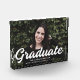 Celebrate your graduate's achievement with a personalised graduation photo keepsake. The photo block features the graduate's horizontal photo with "Graduate" in a bold white script. Personalise the graduation photo block by adding the graduate's name, school, and graduation year.