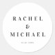 Elegant Minimal White Bold Font Wedding Classic Round Sticker with your Name & Date.