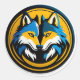 Vibrant wolf circle emblem featuring blue and yellow fur with a bold, symmetrical design. Ideal for sports branding, mascots, logos, and modern wildlife-inspired graphics.