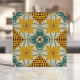 Add vibrant retro flair to your space with this bold tile featuring a geometric design in yellow, teal, and burgundy. Intricate floral and dotted patterns create a dynamic and eye-catching look, perfect for backsplashes, accent walls, or adding a touch of vintage charm to your décor.
