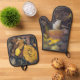 Bolete mushroom with yellow leaves oven mitt & pot holder set