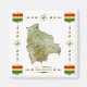 This design comprises a Bolivian map within a border featuring the national flag.