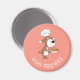 This Refrigerator Magnet features a cute illustration of funny little Dog on the peach pink background. Puppy is dressed as a chef cook (toque and apron) and holds the dish with the nicely prepared food. Great kitchen accessory and gift on the occasion of Birthday, Mother's Day, Father's Day, House Warming, etc.