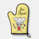 Bon Appétit oven mitt with cute cartoon chef cook. Personalise with custom text. Yellow or custom colour. Custom kitchen accessories.