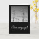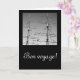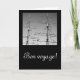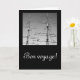 Black card with black and white photo of ship masts and the text bon voyage. Customisable.
