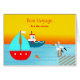 Bon Voyage to a dear cousin greeting card. Features a pair of pelicans, an orange fish, waves, and boats against a warm coloured sunset. Send them off into the sunset with this fun and bright card. Art, image, and verse copyright © Shoaff Ballanger Studios.