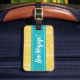 Personal your luggage or travel bag with this cute yellow and blue luggage tag. Bon Voyage! Perfect for cruises, road trips and long flights!