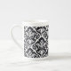 Bone china mug shown with a black/white damask print. Customise this mug or buy as is.