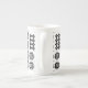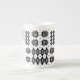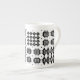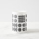 A chic Bone China Coffee Mug, with a pattern of traditional Welsh Tapestry motifs in Black on a White background. This pattern will fit all Mug sizes.