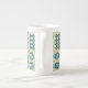 A chic Bone China Coffee Mug, with a pattern of traditional Welsh Tapestry motifs in Navy Blue on a Sable background. This pattern will fit all Mug sizes.