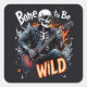 A cool and edgy square sticker featuring a skeleton playing a guitar surrounded by flames with the phrase "Bone to Be Wild," perfect for adding a rebellious touch to any space and gift