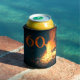 Bonfire birthday party age beer holder. Dark blue black colour with burning fire design and age in big orange distressed numbers.