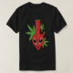 I give wanted to give this a 4 instead of a 5 because these Basic DARK T0shirts run unexpectedly SLIM or Narrow. Which is great if you do not have a potbelly, but I have a paunch. It isn't the shirt's fault that I've got a beer belly. The design and shirt itself is a quality cotton shirt. The color is more of a deep purple, but still a very pretty color. The Basic DARK T-shirts run a bit SLIMMER than the Basic Ts. The neck is a fraction narrower (or seems to be narrower) also. I'm a paunchy middle-aged woman and my neck is 12 inches (31cm) thick and the neckline fell about the same as in the photo of the man, and I had the desire to tug it a bit. So if you're a thick necked man or like loose shirts, be aware these are slimmer shirts. Once I get rid of my lockdown paunch it'll look great. The shirt washed well in cold water with no apparent bleeding. We don't have a dryer, so it hung dry. Did not shrink. Love the colors and the design. The design looks smaller on my shirt than it does on the model on-line. But still, it looks good on the shirt. The printing looks as it does on the model, just the size seems fractionally smaller. Washed garment in cold water, hung dry and design appeared unaffected.