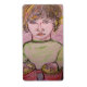 a young boy playing toy bongos from a coloured pencil sketch.