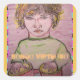 a young boy playing toy bongos from a coloured pencil sketch. also "bongo virtuoso" slogan