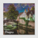 Painting of Bonifacius Bridge and medieval houses in old historic city center of Bruges, Belgium