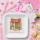 This design features a Parisian themed baby shower "Bonjour Bebe" with a French café in beige and red colours decorated with romantic pink and red flowers. an outdoor seating with a table and chairs, giving a scenic Paris coffee moment. This product can be easily personalised. If you need help with the customisation of the product or need matching products kindly please contact me via Zazzle.