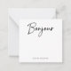 These elegant black and white note cards say "Bonjour" in French, in chic modern script, with your name at the bottom in classic text.