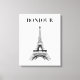 This elegant stretched canvas print features a classic black and white sketch of the iconic Eiffel Tower, paired with the stylish French greeting "Bonjour." Perfect for adding a touch of Parisian charm to any room. The minimalist design and timeless appeal make it a versatile piece that complements various home decor styles.