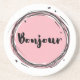 Bonjour in Pink on White Coaster