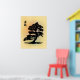 Shown is a black and white sketch of a classic bonsai with "Bonsai" in kanji characters.