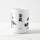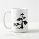 Shown on either side of the mug is a black and white sketch of a Bonsai. Kanji characters for "bonsai" in in the centre.
