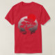 I give wanted to give this a 4 instead of a 5 because these Basic DARK T0shirts run unexpectedly SLIM or Narrow. Which is great if you do not have a potbelly, but I have a paunch. It isn't the shirt's fault that I've got a beer belly. The design and shirt itself is a quality cotton shirt. The color is more of a deep purple, but still a very pretty color. The Basic DARK T-shirts run a bit SLIMMER than the Basic Ts. The neck is a fraction narrower (or seems to be narrower) also. I'm a paunchy middle-aged woman and my neck is 12 inches (31cm) thick and the neckline fell about the same as in the photo of the man, and I had the desire to tug it a bit. So if you're a thick necked man or like loose shirts, be aware these are slimmer shirts. Once I get rid of my lockdown paunch it'll look great. The shirt washed well in cold water with no apparent bleeding. We don't have a dryer, so it hung dry. Did not shrink. Love the colors and the design. The design looks smaller on my shirt than it does on the model on-line. But still, it looks good on the shirt. The printing looks as it does on the model, just the size seems fractionally smaller. Washed garment in cold water, hung dry and design appeared unaffected.