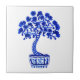 Ceramic tile in a whimsical bonsai tree in a Chinese porcelain planter, in traditional shades of deep to light cobalt blue, on a white background