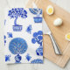 Bonsai Trees Pattern in Cobalt Blue and White Tea Towel