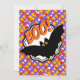 A funny scary bat says Boo! A background of candy corn on this Halloween card adds to the fun. Personalise the message to one of your choosing.