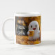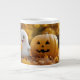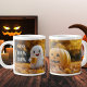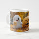 A very cute ghost drinks pumpkin spice latte (I assume) with his friend jack (o lantern). Drink your Fall coffee with...ahem...spirit.