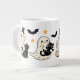 Boo-tifully adorable—this mug features cheerful ghosts, a curious black cat, and fluttering bats for a lighthearted Halloween vibe.