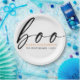 Halloween design features Boo greeting in a modern hand-lettered font.