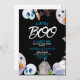 A little Boo is almost due! Cute pastel blue Halloween boy baby shower invitation