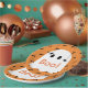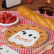 This simple and cute halloween paper plate features a cute ghost with a few spiders and black bat patterns on orange background. Perfect for fall / autumn birthdays and halloween! Personalise it for your needs. You can find matching products at my store.