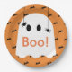 Boo! Halloween Ghost & Bats Orange Paper Plate