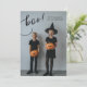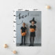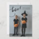 This personalised Halloween photo card features a picture of your favourite goblin(s) and a simple hand lettered "boo!" greeting in black. The backer is a pattern of watercolor bats. This year let your holiday cards be scary instead of merry!