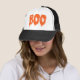 ALT: Scary "Boo!" printed trucker hat with glow details - adjustable Halloween snapback.