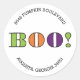 Put the finishing touches on your Halloween party invitations with this round return address label featuring "BOO!" in green, orange, and purple.