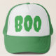 scary Halloween trucker Hats with the word BOO writing in a scary font. The perfect witch hat holiday gifts for the whole family.