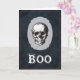 A gothic Halloween card featuring a detailed skull illustration in a vintage frame with bold “Boo” text. Perfect for sending spooky greetings.