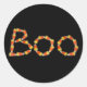 Get in the Halloween spirit with this adorable "boo" sticker. The "boo" text is written out of real candy corn!