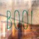 Boo minimalist simple spooky handwritten typography funny cute food allergy awareness Halloween Window Cling. Halloween decorations.