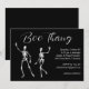 Dancing skeletons and the trendy saying Boo Thang accent this black and white, adult Halloween Party Invitation.