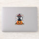 Celebrate Halloween with this adorable black cat sticker sitting on a carved pumpkin, complete with a witch's hat! Perfect for adding a spooky yet playful touch to your Halloween decorations, scrapbooks, or trick-or-treat bags. The cute design with vibrant colours and charming details makes this sticker ideal for Halloween parties, kids’ crafts, and seasonal décor. Whether you’re looking to get into the spooky spirit or add some festive fun, this sticker is the perfect choice for any Halloween project.