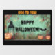 Not too spooky picture of pumpkins, a bat, a lantern and trees with Autumn leaves, is featured on this window cling for Halloween. With message, "Boo To You! Happy Halloween", this will enhance your windows for the Halloween holiday! Sticks to glass surfaces electro-statically so it can be removed and used over again. A great and easy way to decorate your home for Halloween.