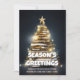 A modern and fun golden Christmas Tree with a golden star on top is made up of stacked books and is framed by a dark blue background that has large white templates near the base for your custom festive season greeings. The template currenlty reads "Season's Greetings" and has two additional templates beneath it for your message to customers and/or clients. The reverse side is the same dark blue on which templates for additional wording plus your company qr code or corporate logo appear. These are ideal for the festive holiday period from a writer, novelist, publisher, proofreader, historian or anyone whose profession involves books. Convey the spirit of the season to customers, friends and family with this plain but eye-catching design. Season's Greetings and Happy holidays!