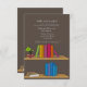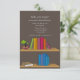 A charming bookcase, with favourite books in colourful covers, and a potted plant to decorate the shelves makes a great invitation for any book-club-related gathering. The card is easy to customise with your wording, font, font colour and choice of six paper types.
