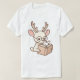 Cute flat deer reading tiny open book – cozy bookworm cottagecore in clean minimal style.